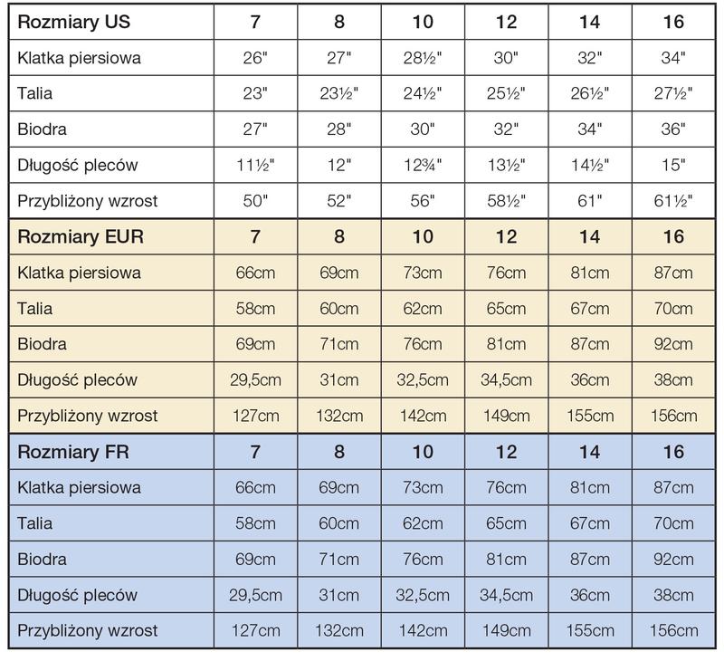 Typ odzieży Pomiar (obwód w cm) Wielkość brytyjska (UK) Wielkość europejska (EU)